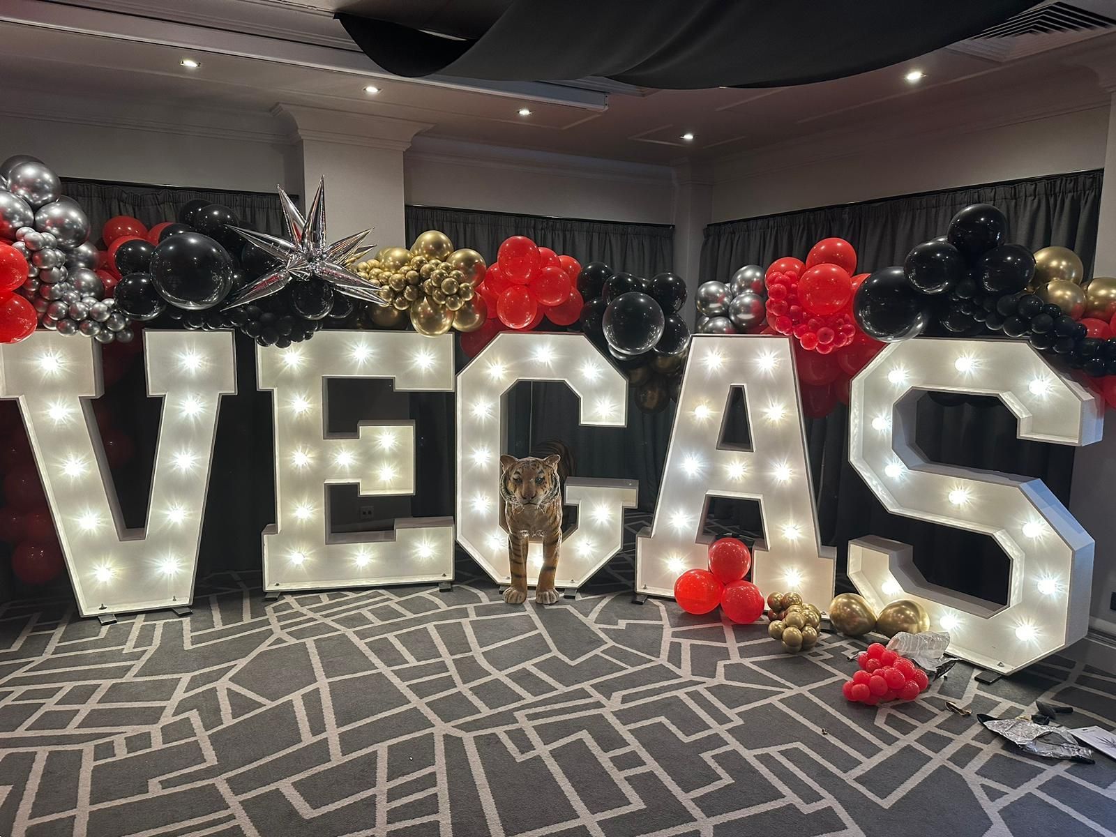 We offer our Las Vegas themed prop hire and installation services all over the UK including Manchester, Glasgow, London, Cardiff, Bristol and anywhere between.