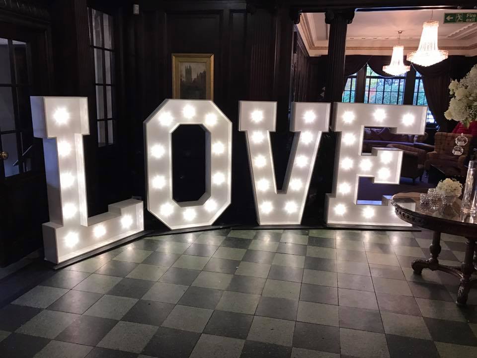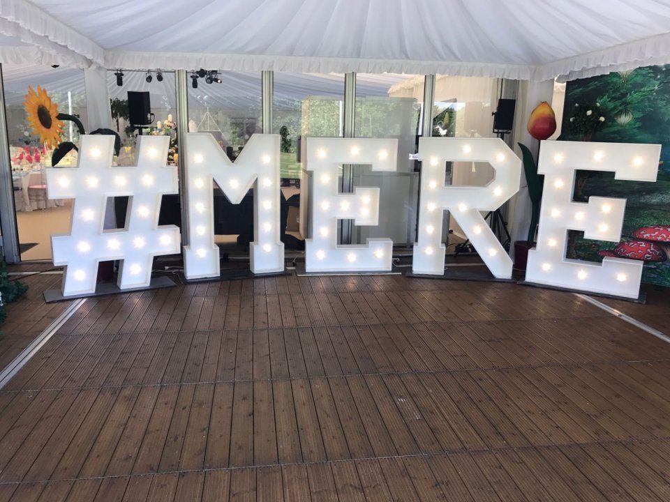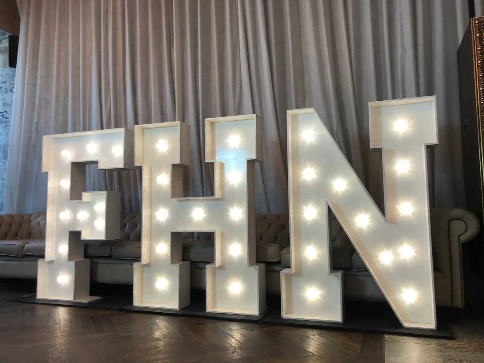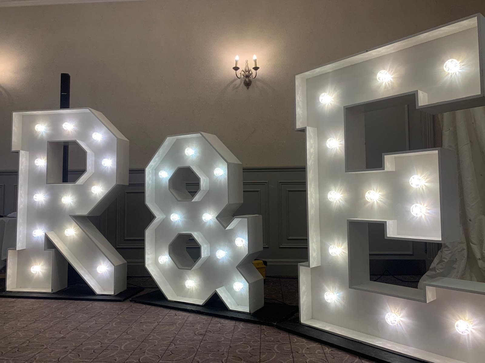 Have your name in Lights!Our 5ft light up letters & numbers are a great way to personalise your wedding or event!