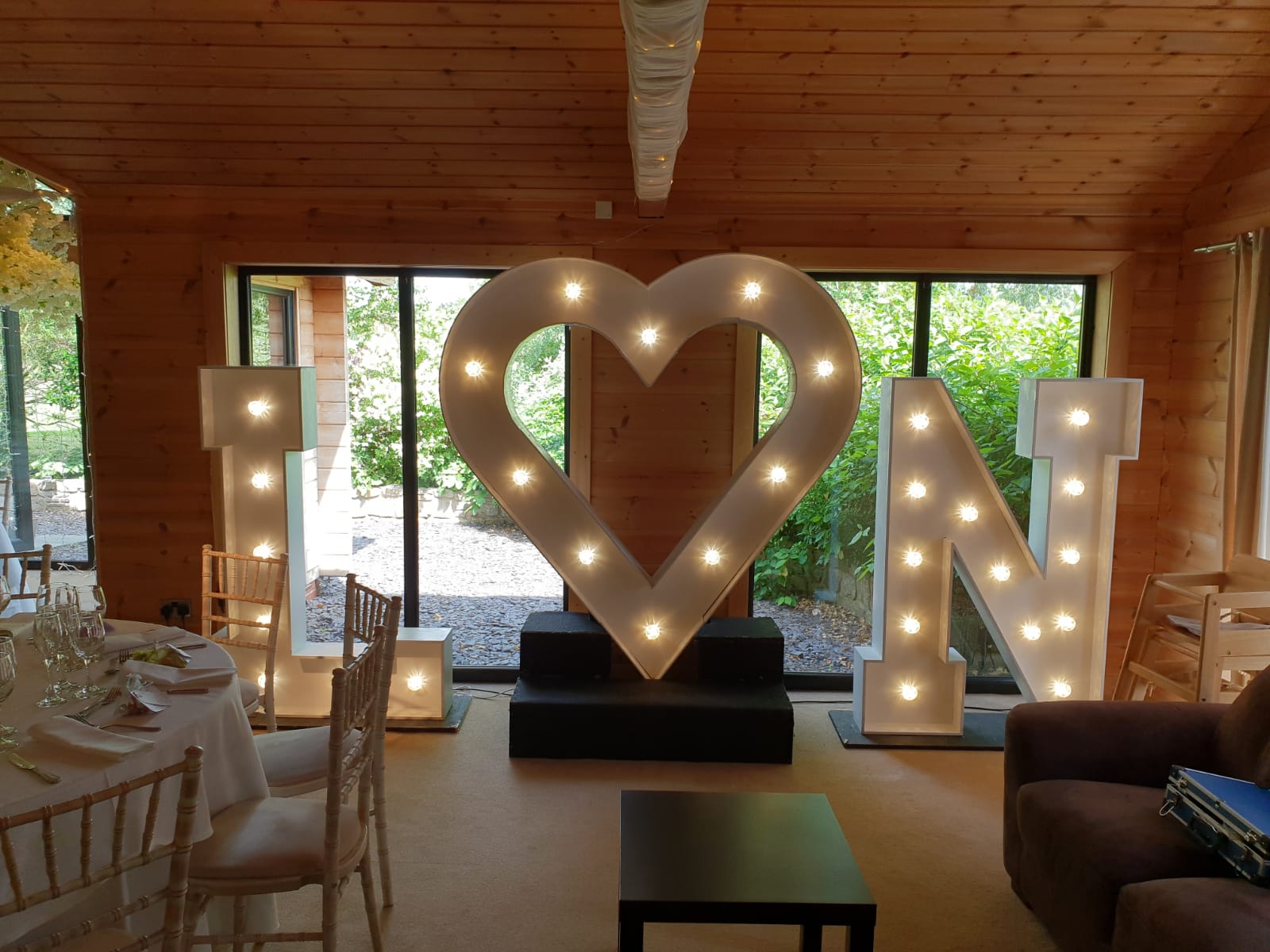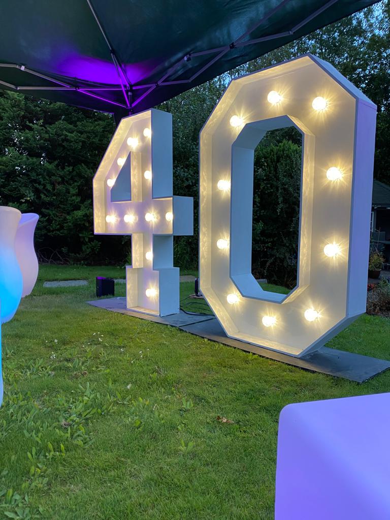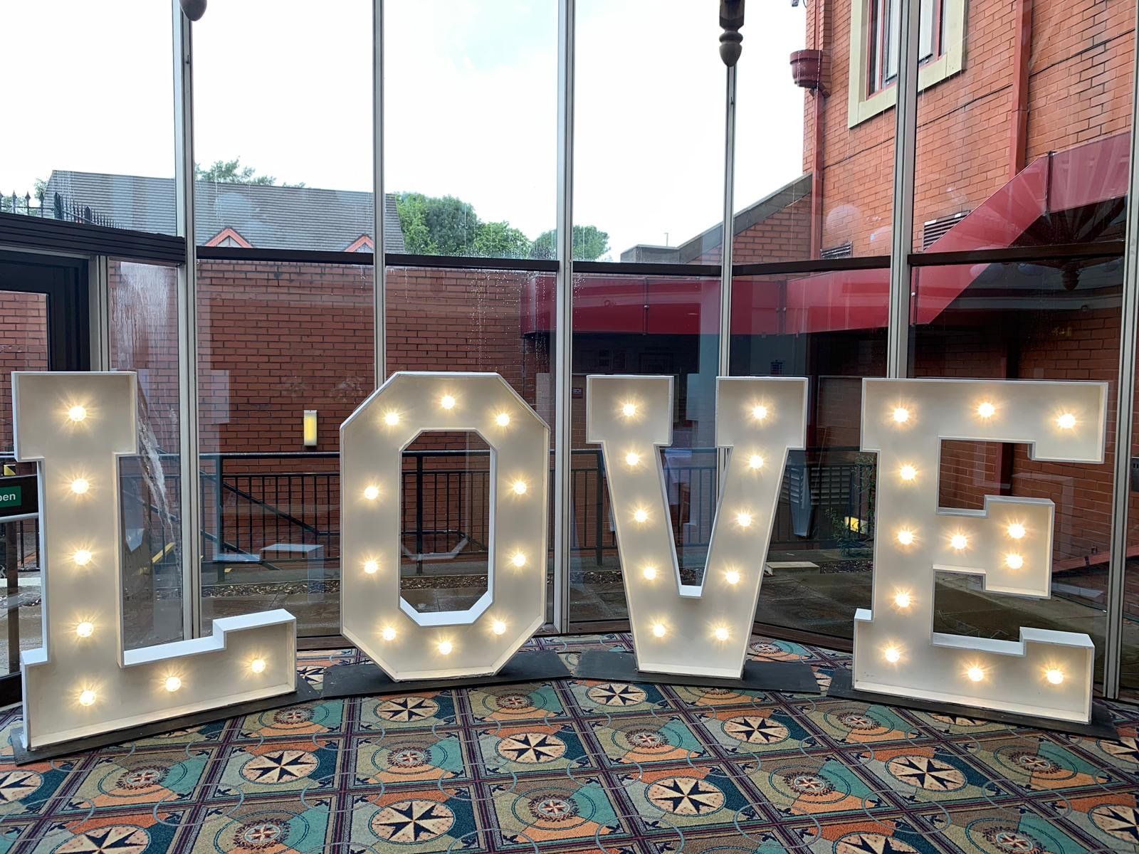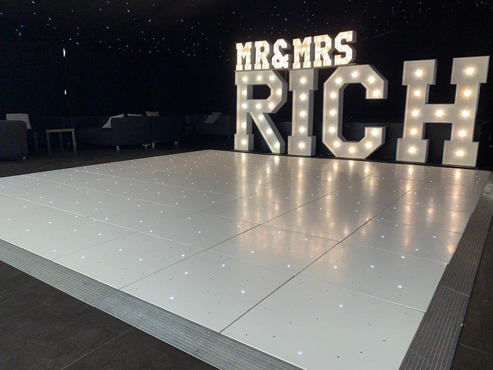 Have your name in Lights!Our 5ft light up letters & numbers are a great way to personalise your wedding or event!
