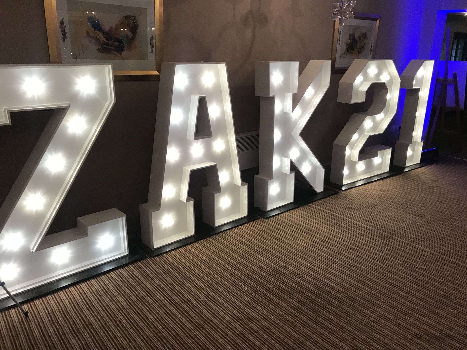 Ice Entertainment UK have the full spectrum of light up letters and numbers to hire for your wedding or event. We can spell any word or provide the numbers for any birthday and if you buy light-up letters along with any of our other packages, we could offer you a discount.