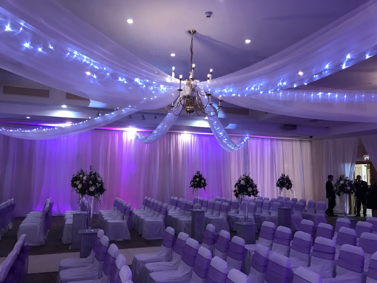 Ice Entertainment UK can transform any function room or suite using our white drapes, ceiling swags, backdrops & up-lighters! Using adjustable aluminium framework we can drape walls up to 5m in height to completely change the look of your event space!